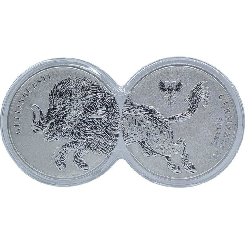 Germania Mint presents the third coin in the Germania Beasts series – Gullinbursti 1 oz Silver BU. Following Fafnir and Fenrir, it is now the turn of another legendary beast – the golden-bristled boar Gullinbursti, crafted by dwarf masters. A symbol of strength, speed, and unstoppable will, it has been immortalized in silver as part of the exclusive Germania Beasts collection.